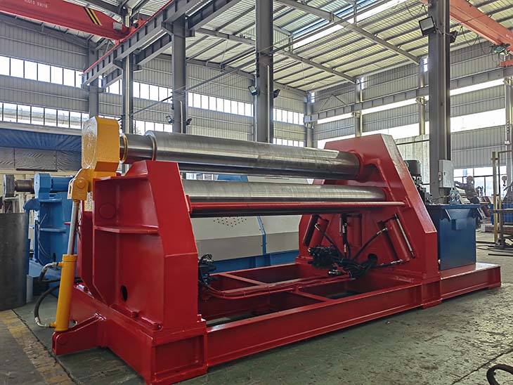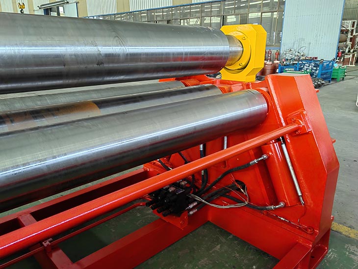 在卷制过程中,通过不断调整上辊的下压量、侧辊的位置和压力,以及各辊轴的转速,来控制板材的弯曲半径和精度。